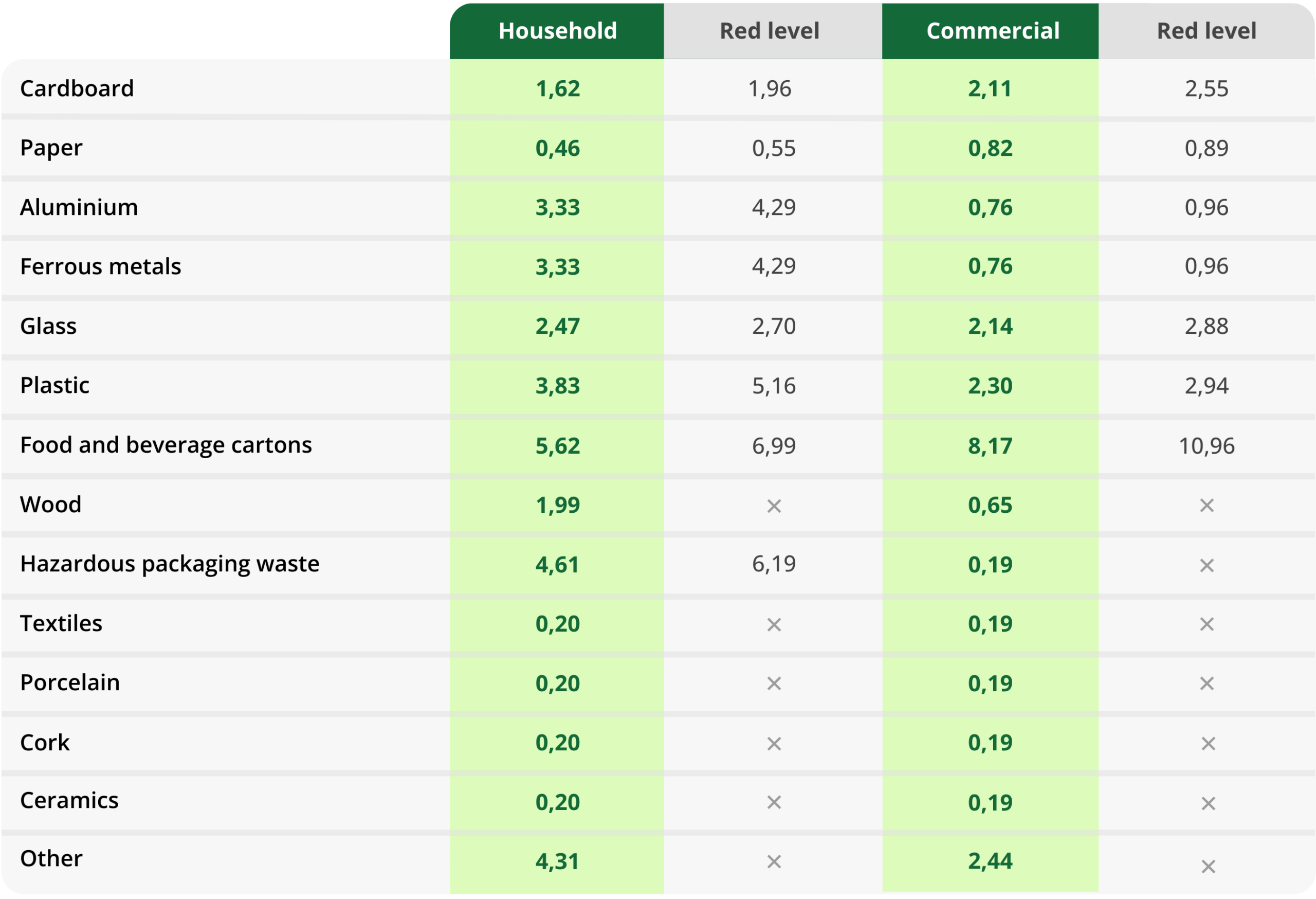 The eco-modulated fees are structured as a bonus/penalty system. The modulated fee is the price you as a member must pay for handling your packaging waste when you put packaging on the market that ends up in the red level. The modulated fee is +35 % of the operational costs. Anyone who does not have documentation that their packaging belongs to the green or yellow level will be charged the price for the red level.
