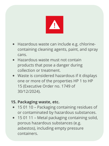 - The handling of collected packaging waste